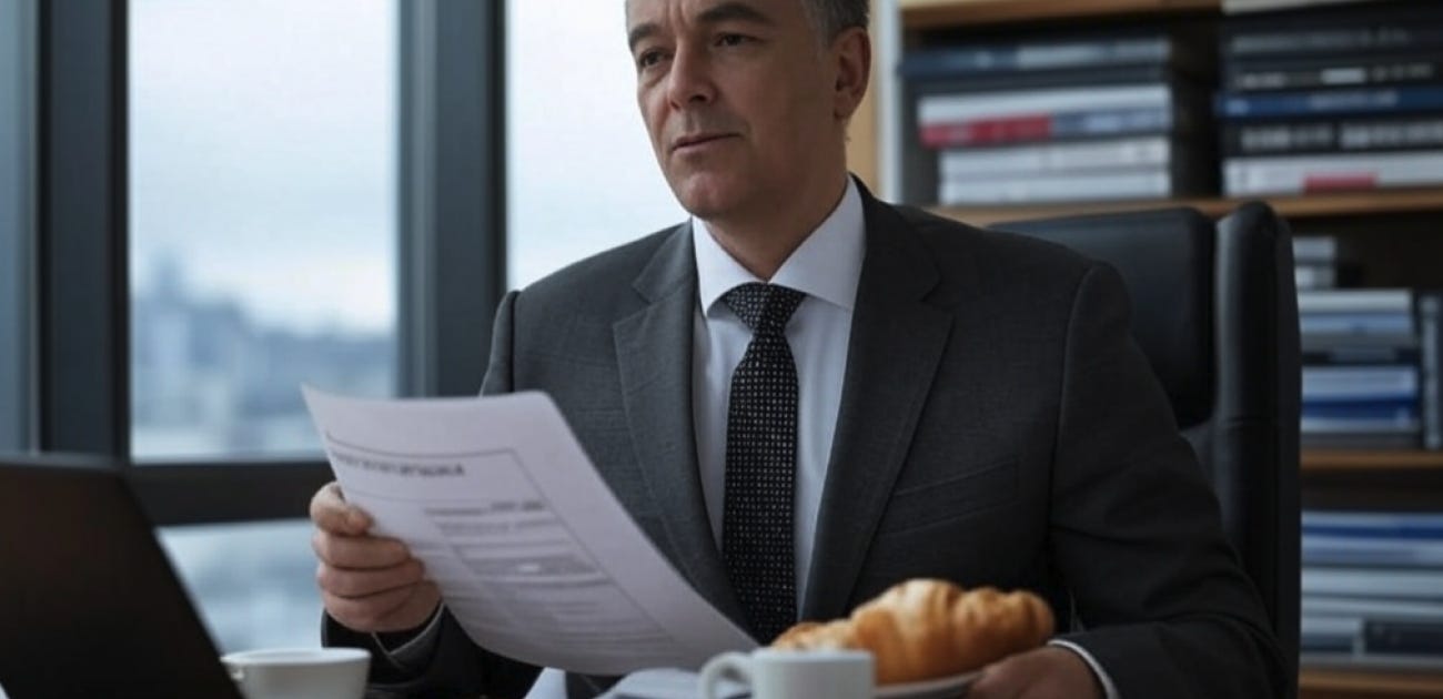 Linkedin Thinking con café con leche y un croissant